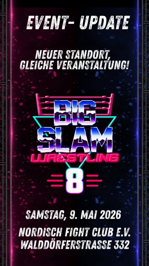Big Slam – 8 findet nicht wie bislang angekündigt in der WISE eG statt. Die Veranstaltung wurde aus organisatorischen Gründen in den Nordisch Fight Club verlegt.